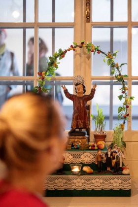 E estão invariavelmente no presépio (e à venda nos mercados, minúsculas), ao lado da tangerina que é a melhor fruta da época, da castanha que engrossa os pratos, dos brindeiros que são os pães pequenos para a pequenada, dos licores. O conjunto é encimado por um arco de alegra-campos e enfeitado com cabrinhas (as plantas endémicas, entenda-se), numa perfeita mimetização da paisagem e dos costumes, como nos explica o investigador Martinho Mendes, investigador no centro de estudos de História do Atlântico Alberto Vieira, que fala do Natal como uma “época sinestésica”.