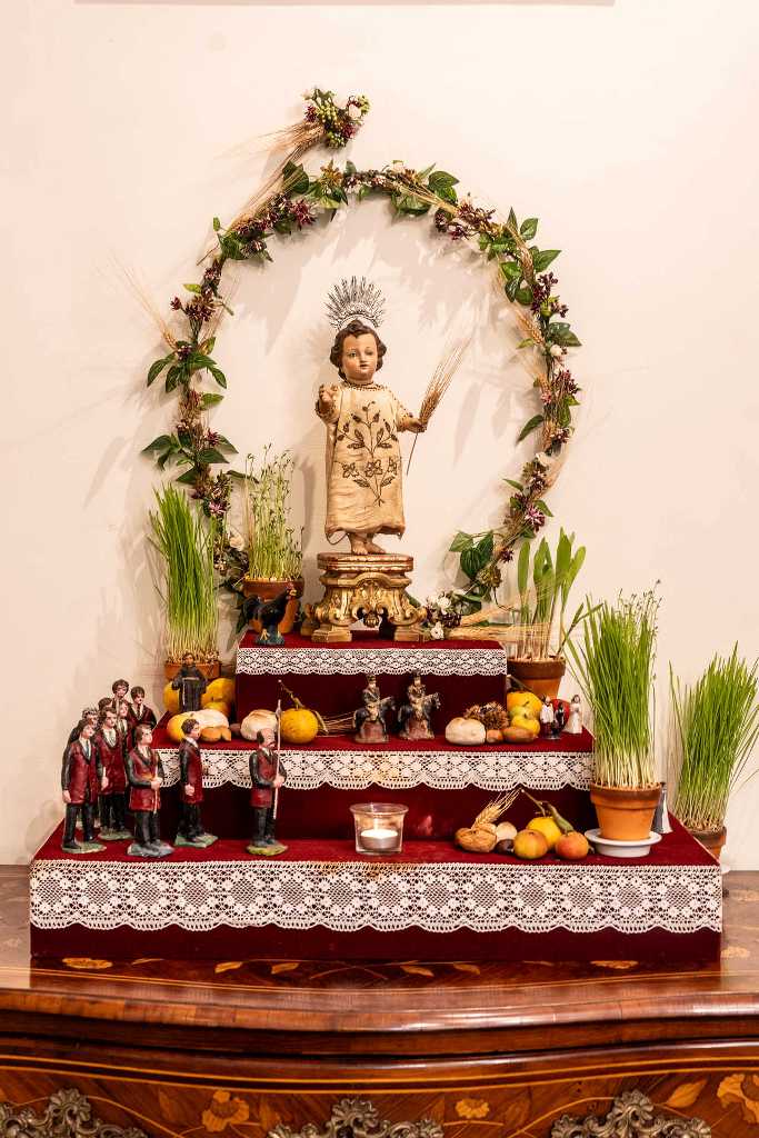 Feito de patamares antigamente feitos com as caixas de medida do trigo, cobertos de pano vermelho, inspirado nos altares das igrejas, constrói-se como um agradecimento, com alimentos em cada andar e o menino no topo.