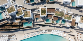 Descanso sobre o Mar Egeu na ilha de Mykonos