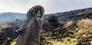 Estátuas tradicionais da Ilha de Páscoa consumidas pelo fogo