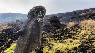 Estátuas tradicionais da Ilha de Páscoa consumidas pelo fogo