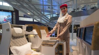 No futurista stand de três pisos da Emirates com o nome Infinite Possibilities, que estará em exibição na ITB - Feira de Turismo em...